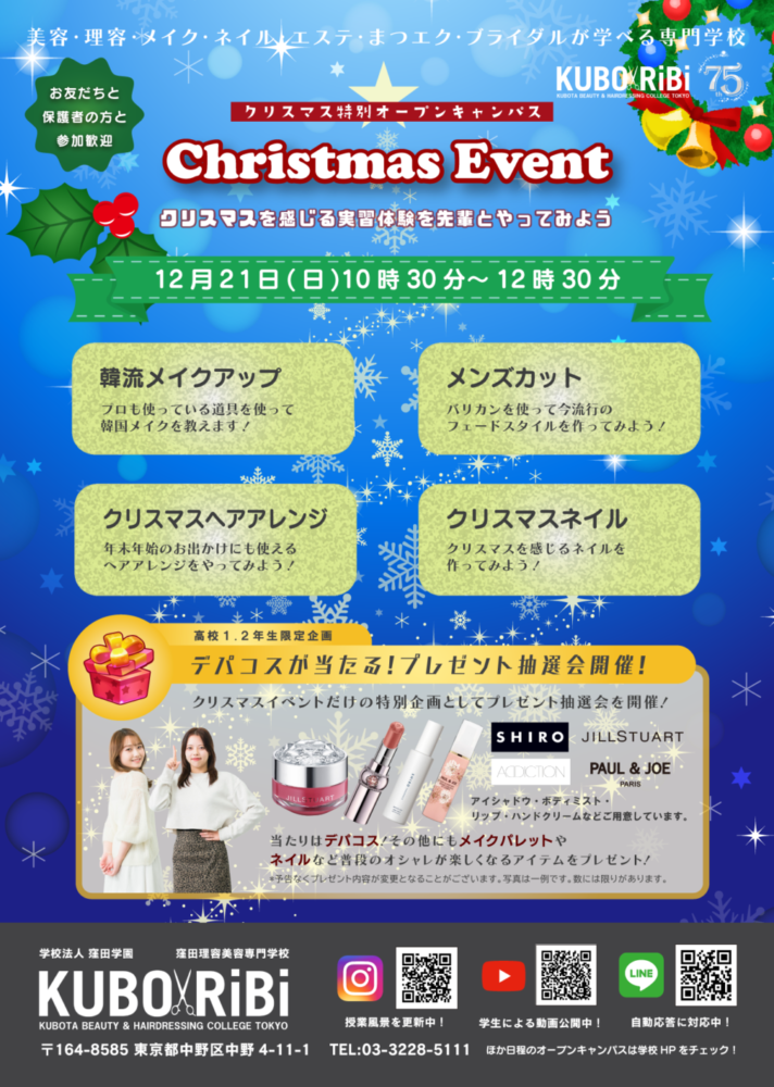 12月 21日(日) 10:30~クリスマス特別オープンキャンパス